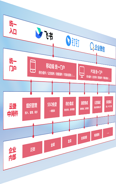 对协作平台提供支持服务,,,支持企业应用与协作平台对接,,,,包含组织同步、、消息集成、、、待办集成等。。。支持目前主流的协作平台:钉钉、、、企微和飞书。。。